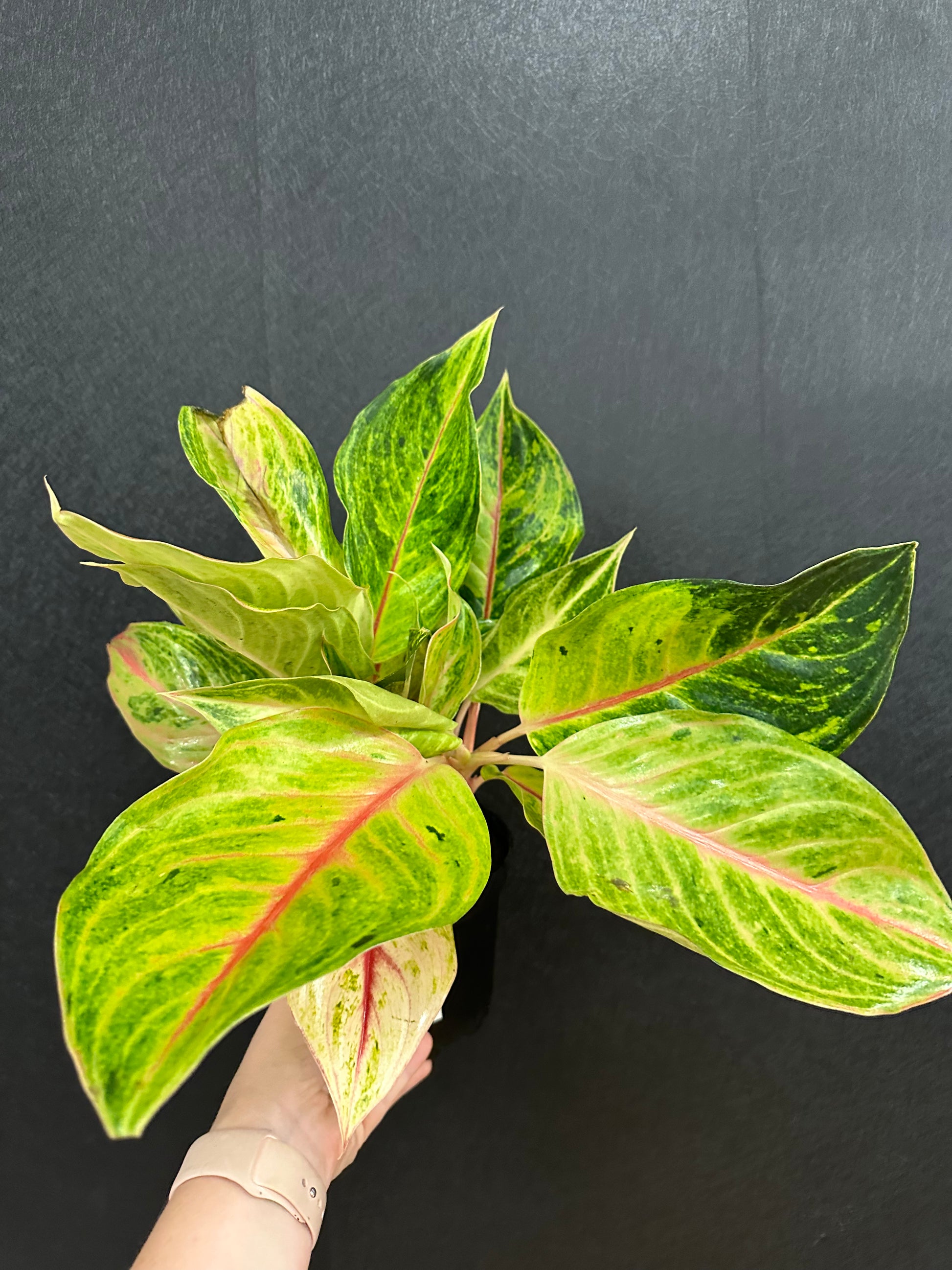 The **Golden Fluorite Aglaonema** is a striking variety of the Aglaonema, known for its stunning, lime-green leaves with delicate golden accents. This low-maintenance plant is perfect for brightening up indoor spaces and is a favorite among collectors.
