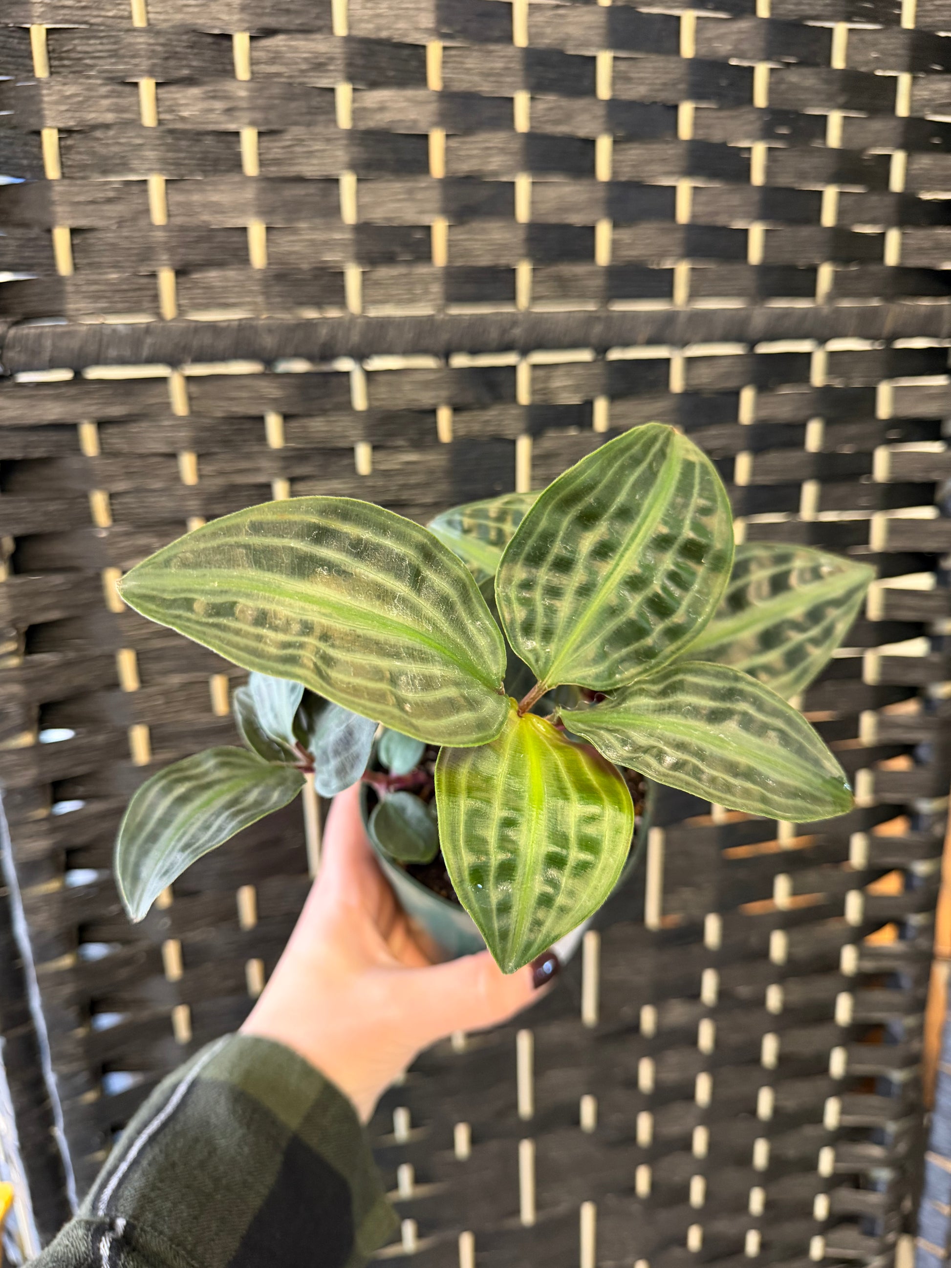 The Seersucker Geogenanthus, also known as Geogenanthus poeppigii, is a compact, low-growing plant known for its striking leaves. The deep green foliage features textured, rippled patterns that resemble seersucker fabric, making it a standout accent for any indoor space.