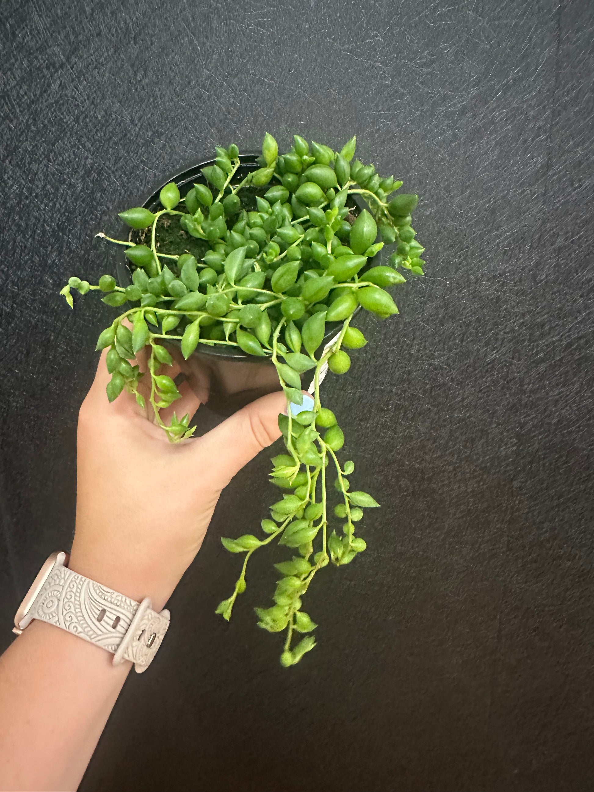 This unique trailing succulent is an eye-catching choice for anyone who loves sculptural, low-maintenance greenery.
